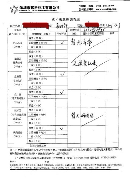 深圳齊善食品有限公司滿意度調查表