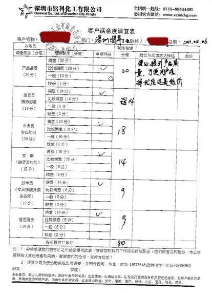 深圳煙草工業有限公司滿意度調查表