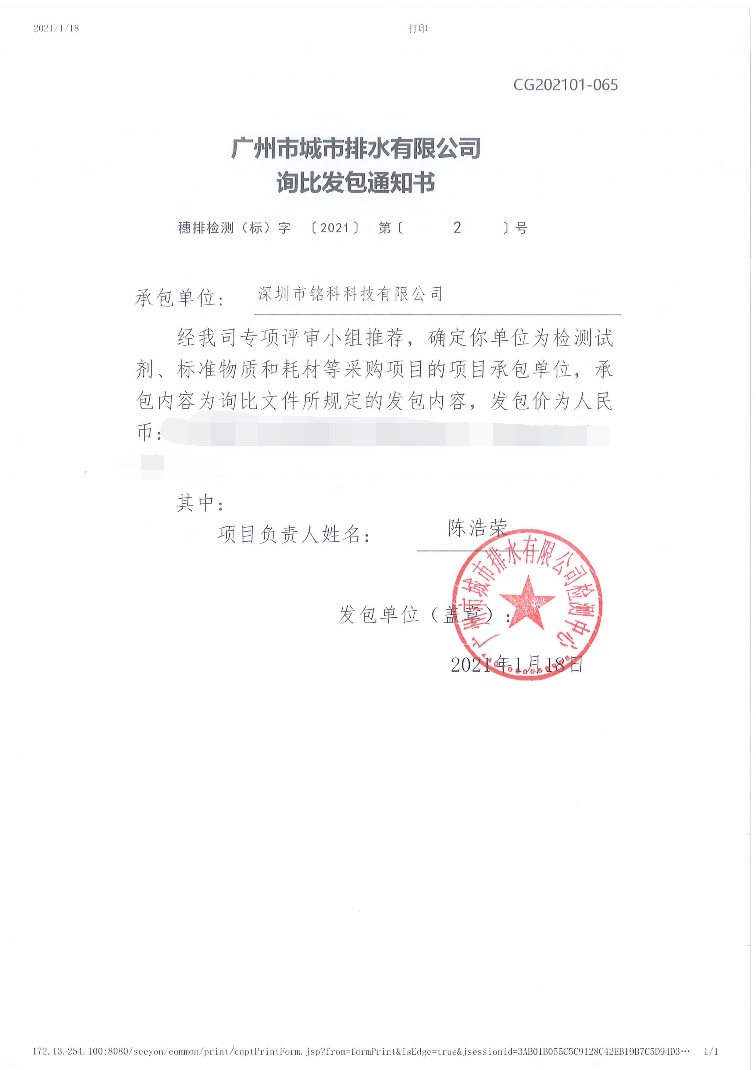 中標通知丨銘科科技成功中標“廣州市城市排水有限公司詢比發包”項目