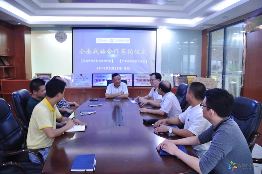 2016年9月29日,深圳市銘科科技有限公司與廣東省環保技工學校舉行了全面戰略合作簽約儀式。 簽約儀式在銘科集團舉行,校企雙方領導充分肯定了簽訂的合作項目,表達了會盡全力共同做好合作項目,進一步拓寬合作面、加深合作深度的期望。
