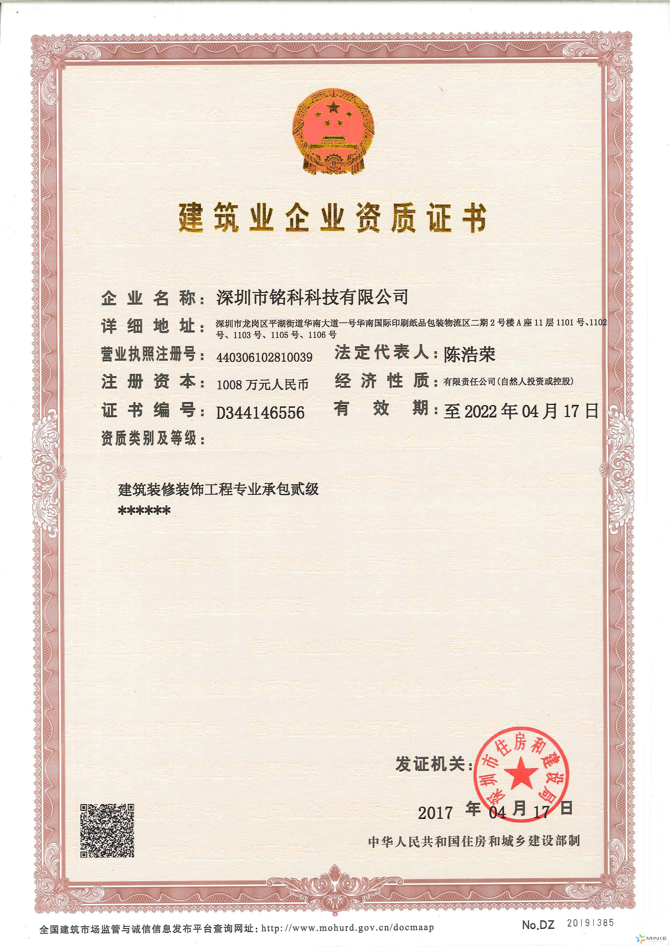 9月5日,銘科科技榮獲“建筑業企業資質二級證書”。此次能夠成功獲得此證書,對銘科科技而言,不僅僅是我司能夠獲得長遠發展的前提條件,更是我司參與市場建筑業競爭的資格和本錢!