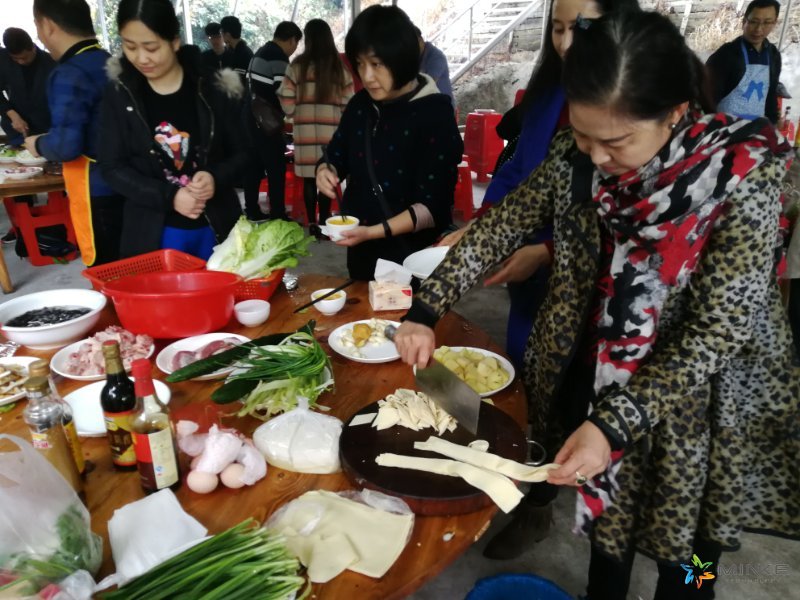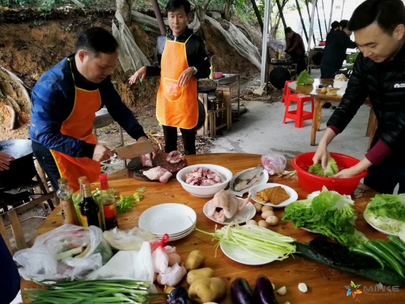 終于我們迎來了最激動人心的環節——埋鍋做飯!挑菜、洗菜、架鍋、撿柴、生火。也許對于大家伙兒來說,最難的環節莫過于生火了吧,大家協力煮飯做菜,土灶的火焰暖和了大家,經過大家的共同努力,終于功夫不負有心人,香噴噴的菜肴一樣一樣出鍋了......