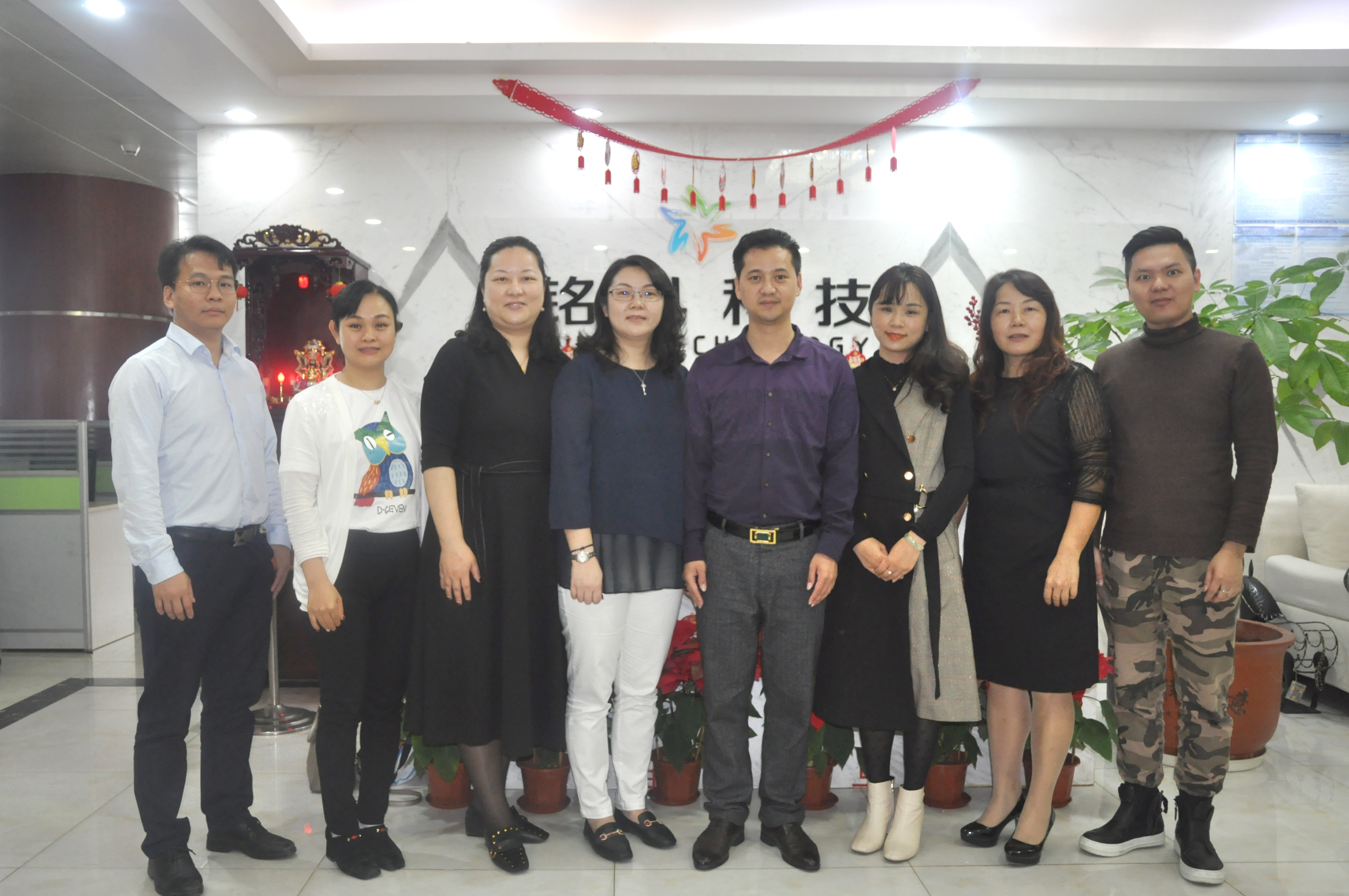 2019年2月21日,上海司樂儀器有限公司總經理 金惠華、銷售經理劉春紅,寧波新芝生物科技股份有限公司銷售經理 陳桂貞 等廠家來訪銘科,銘科科技總經理陳浩榮攜全體員工熱情歡迎來訪的廠家朋友們。